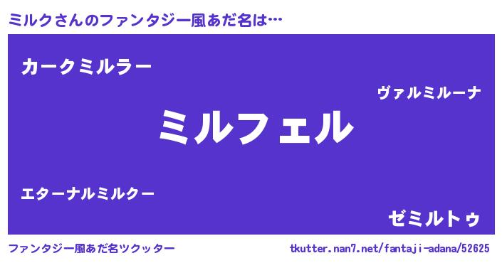 | ヘコむあだ名 | 『ミルにゅー』『牛乳』『ミルク(笑)』 |