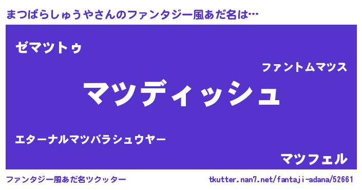 | 意味不明あだ名 | 『永久保存まつばらしゅうや』 |