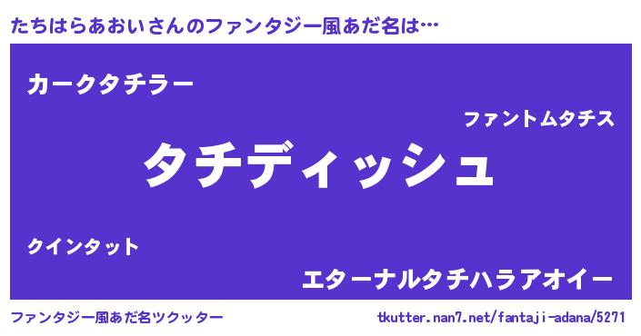 | ヒーロー風カッコイイあだ名 | 『ネオタチハラアオイ』『魔戒騎士タチ』 |