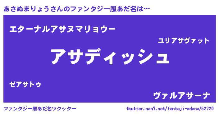 | 欧米人風あだ名 | 『ダルビッシュあさぬまりょう』 |