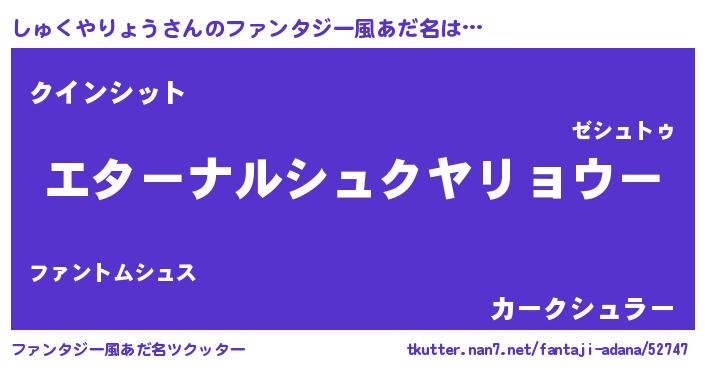 | 意味不明あだ名 | 『しゅくやりょうフォーエバー』 |