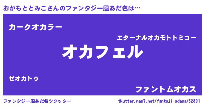 | 男性向けラノベタイトル風あだ名 | 『おかもととみこの憂鬱』 |