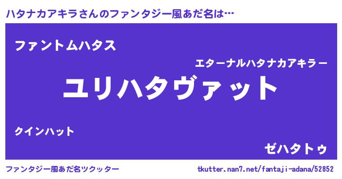 | 男性向けラノベタイトル風あだ名 | 『ハタナカアキラスレイヤー』 |
