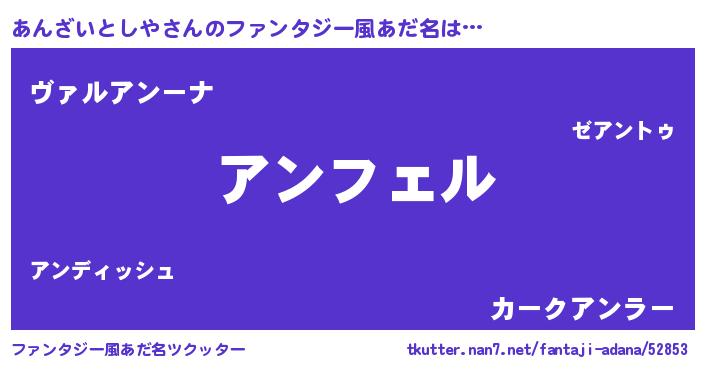 | 男性向けラノベタイトル風あだ名 | 『アンザイトシヤアートオンライン』 |