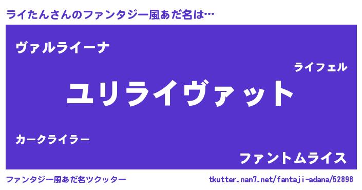 | 男性向けラノベタイトル風あだ名 | 『転生したらライたんだった件』 |
