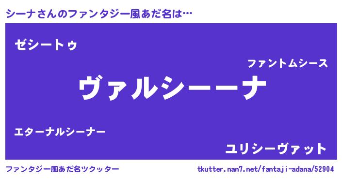| 男性向けラノベタイトル風あだ名 | 『魔弾の王とシーナ』 |