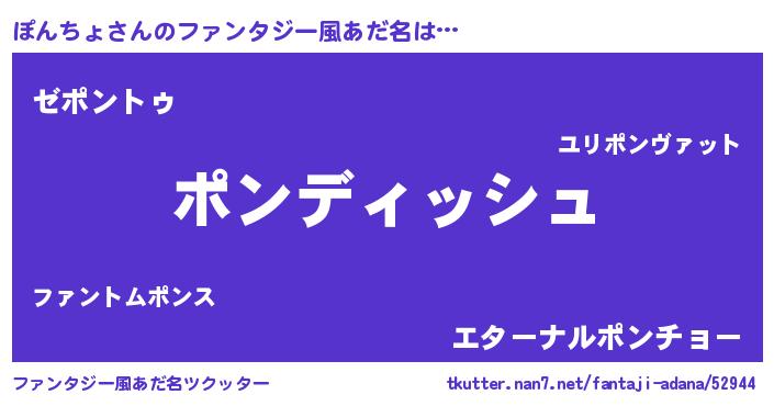 | 男性向けラノベタイトル風あだ名 | 『ぽんちょという概念が存在しない退屈な世界 』 |