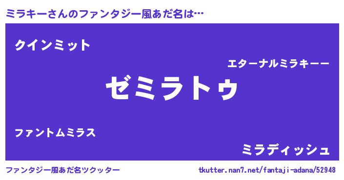 | 意味不明あだ名 | 『自称ミラキー』『永久保存ミラキー』 |