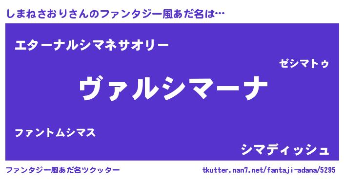 | 男性向けラノベタイトル風あだ名 | 『この素晴らしい世界にしまねさおりを!』 |