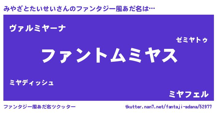 | 意味不明あだ名 | 『とにかく怪しいみやざとたいせい』 |