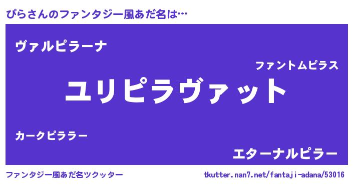 | ポケモン風あだ名 | 『ピラキング』『ピーライ』『ヒピラ』 |