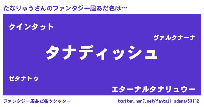 | 男性向けラノベタイトル風あだ名 | 『たなりゅうという概念が存在しない退屈な世界 』 |