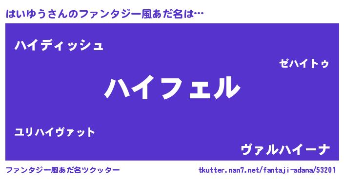 はいゆうさんのファンタジー風あだ名をツクッター!