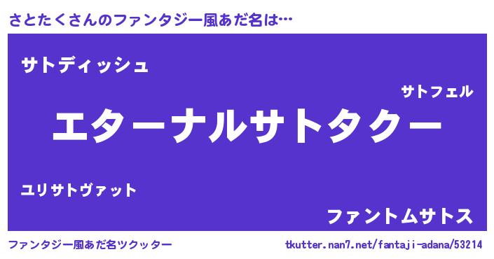 | 男性向けラノベタイトル風あだ名 | 『うちの娘の為ならば、俺はもしかしたらさとたくも倒せるかもしれない。』 |