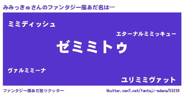 | 意味不明あだ名 | 『自称みみっきゅ』『永久保存みみっきゅ』 |