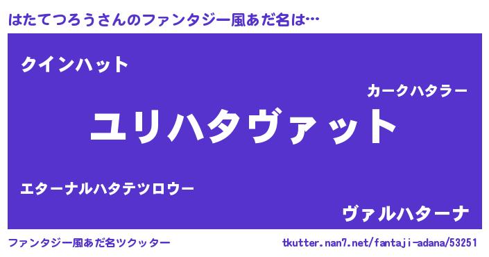 | 女子向けラノベタイトル風あだ名 | 『はたてつろうの玉の輿計画!』 |