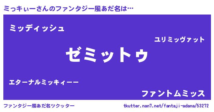 | 女子向けラノベタイトル風あだ名 | 『ミっキぃーなんてお断りですっ。』 |