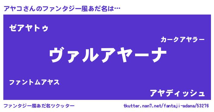 | ヘコむあだ名 | 『アヤコ(小並感)』『アヤお』 |