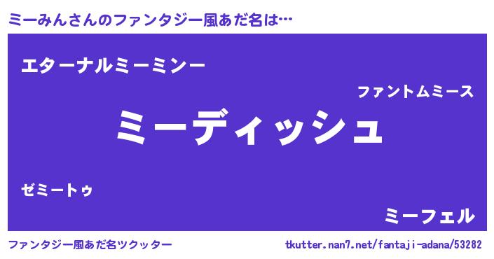 | 意味不明あだ名 | 『永久保存ミーみん』『ペロリンミーみん』 |