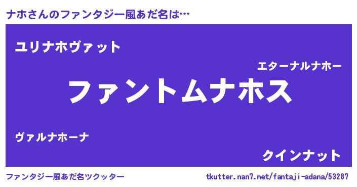 | 男性向けラノベタイトル風あだ名 | 『ナホの嫁は女の子じゃないと思った?』 |