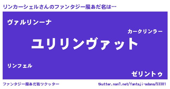 | 女子向けラノベタイトル風あだ名 | 『リンカーシェルの玉の輿計画!』 |