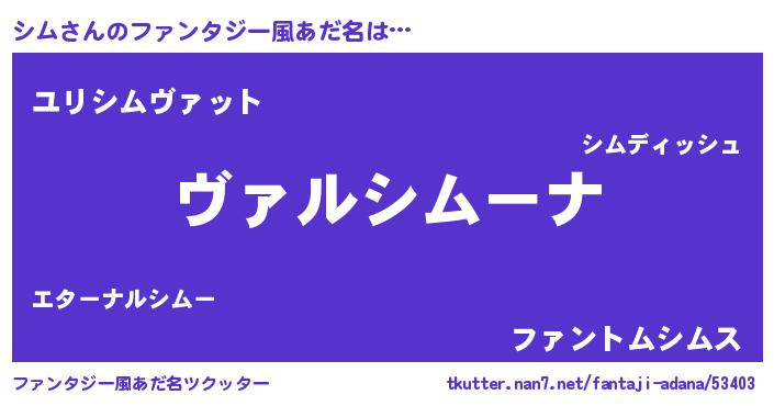 | ポケモン風あだ名 | 『シームイ』『シムキング』『ヒシム』 |