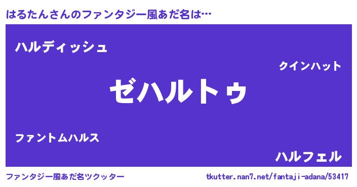 | 意味不明あだ名 | 『自称はるたん』『永久保存はるたん』 |