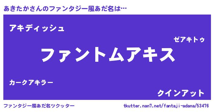 | 女子向けラノベタイトル風あだ名 | 『あきたかは平凡を望む』『闇のあきたか』 |