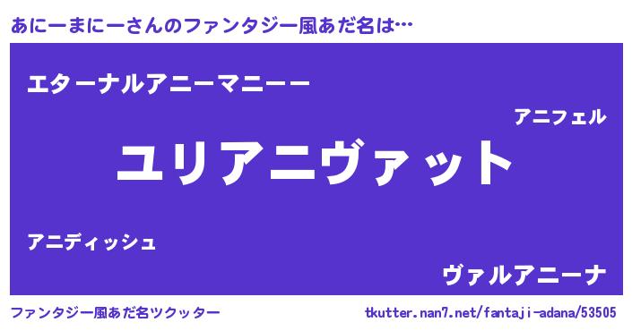 | 女子向けラノベタイトル風あだ名 | 『あにーまにーの玉の輿計画!』 |