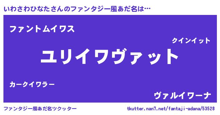 | 男性向けラノベタイトル風あだ名 | 『イワサワヒナタスレイヤー』 |