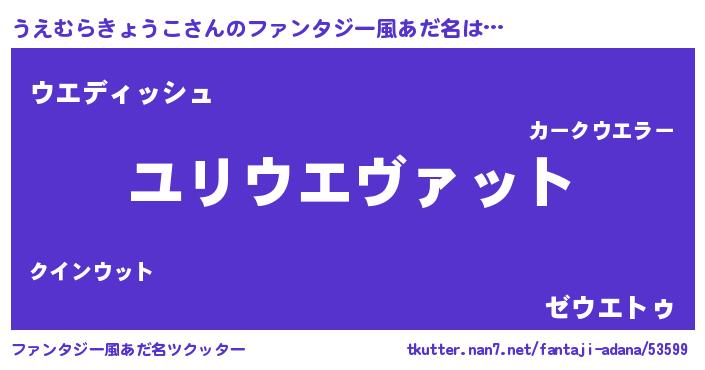 | 肩書あだ名 | 『うえむらきょうこ上級大将』 |