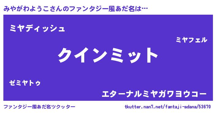 | 可愛いあだ名 | 『みやちゅっちゅ』『みやがわようこママ』 |