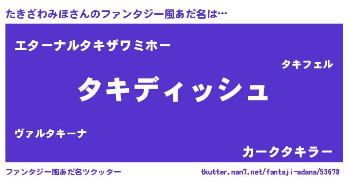 | 男性向けラノベタイトル風あだ名 | 『たきざわみほという概念が存在しない退屈な世界 』 |