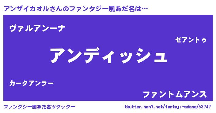 | 意味不明あだ名 | 『永久保存アンザイカオル』 |