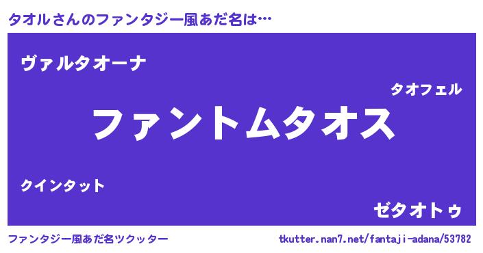 | 意味不明あだ名 | 『とにかく怪しいタオル』『自称タオル』 |