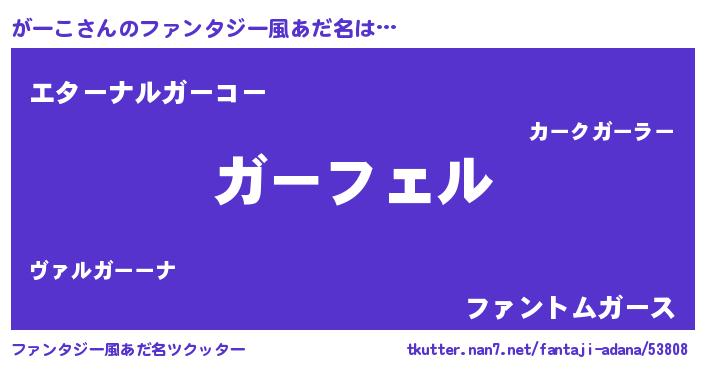 | 男性向けラノベタイトル風あだ名 | 『がーこの憂鬱』 |