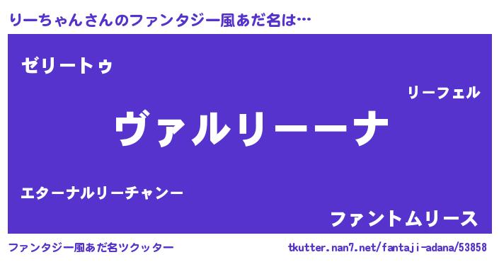 | 男性向けラノベタイトル風あだ名 | 『この素晴らしい世界にりーちゃんを!』 |