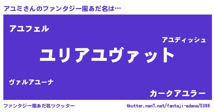 | 自動車の名前っぽいあだ名 | 『アールスユイス』『アユティマ』 |