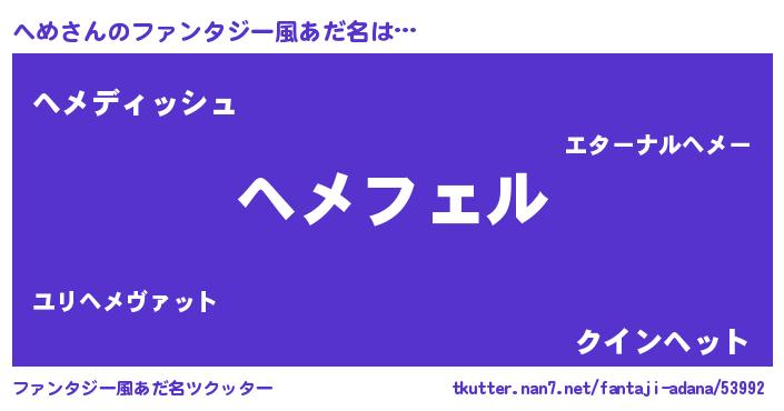 | 女子向けラノベタイトル風あだ名 | 『へめ姫と円卓の騎士』『死神へめの再婚』 |