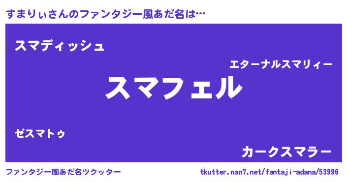| 男性向けラノベタイトル風あだ名 | 『すまりぃの憂鬱』『緋弾のスマリィ』 |