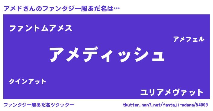 | 男性向けラノベタイトル風あだ名 | 『アメドという概念が存在しない退屈な世界 』 |