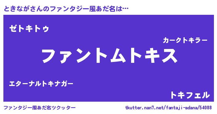 | ヒーロー風カッコイイあだ名 | 『黄金騎士トキ』『究極戦士トキナガ』 |