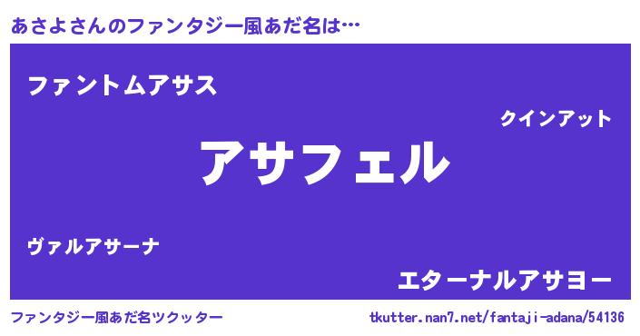 | 男性向けラノベタイトル風あだ名 | 『あさよの憂鬱』『魔弾の王とあさよ』 |