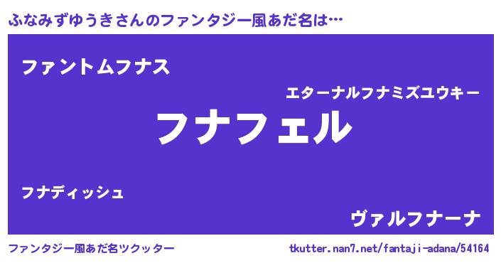 | 男性向けラノベタイトル風あだ名 | 『ふなみずゆうきの憂鬱』 |
