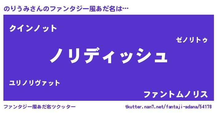 | 男性向けラノベタイトル風あだ名 | 『のりうみという概念が存在しない退屈な世界 』 |