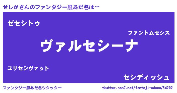 | ヒーロー風カッコイイあだ名 | 『仮面セシダー』『最強戦士セシカ』 |