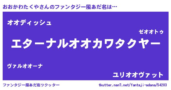 おおかわたくやさんのファンタジー風あだ名をツクッター!