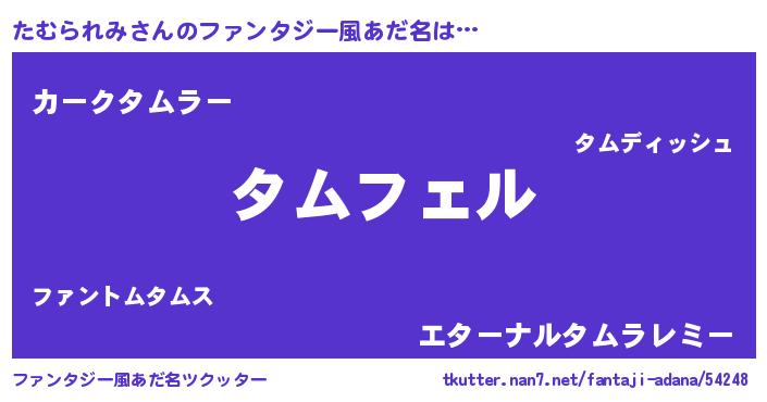 | 男性向けラノベタイトル風あだ名 | 『タムラレミアートオンライン』 |