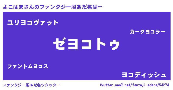 | 意味不明あだ名 | 『自称よこはま』『なめこ科よこはま属』 |