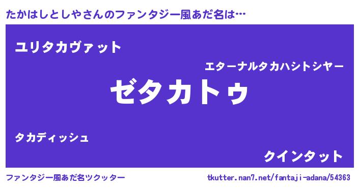 | ヒーロー風カッコイイあだ名 | 『超時空戦士タカハシトシヤ』 |